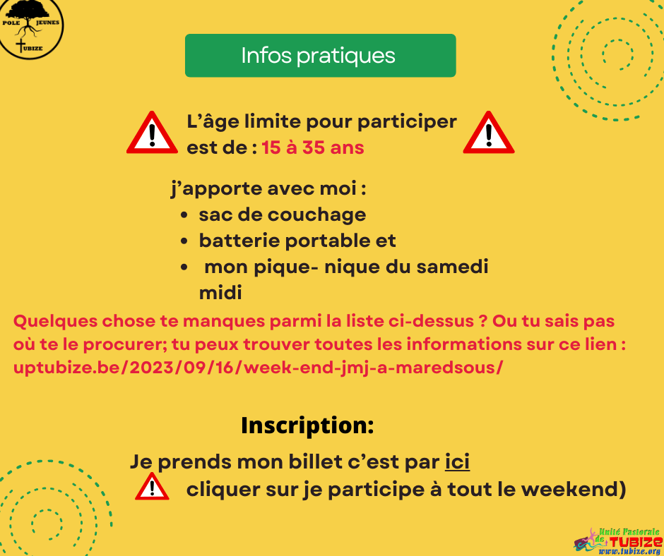 Tous les participants au JMJ du pôle jeunes de Tubize doivent participer au week-end JMJ à Maredsous