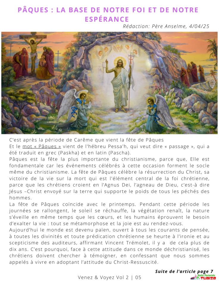 Rédaction: Alex Baondjo 5/04/25 ( vous trouvez cet article dans notre brochure de Pâques (Venez & Voyez)
