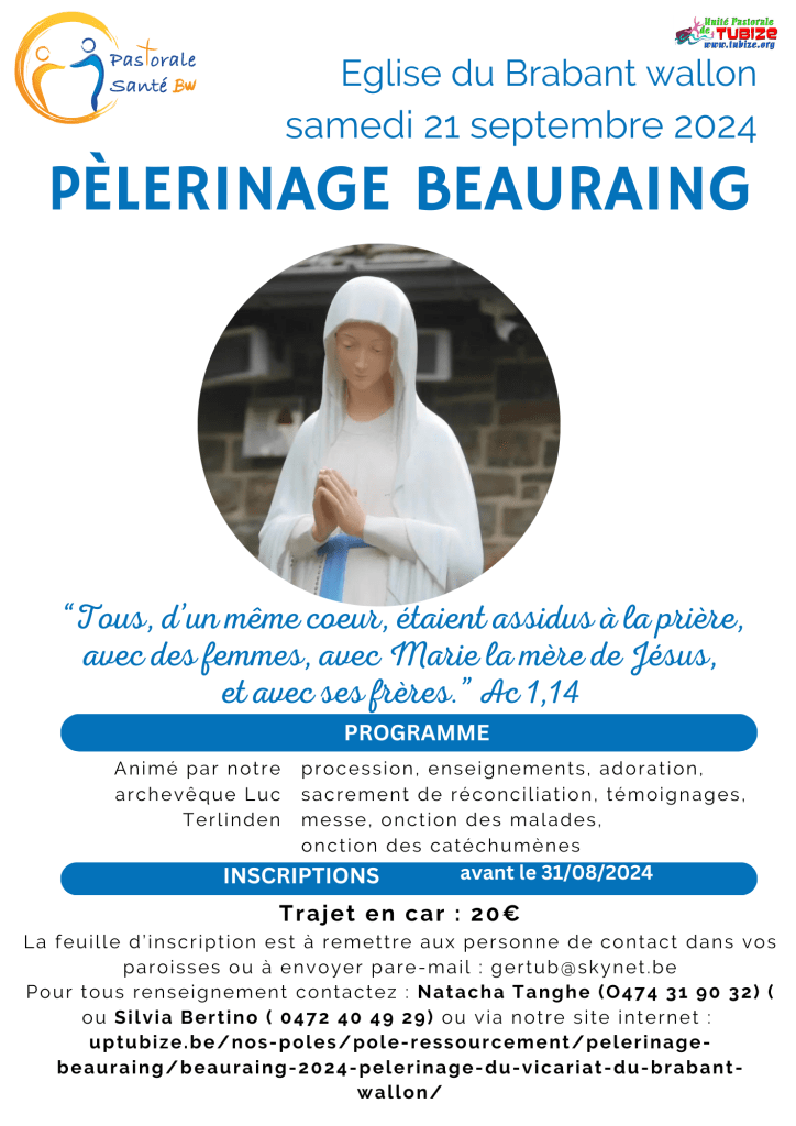 c’est durant la journée du 21 septembre 2024 que l’unité pastorale de Tubize se rassemblera à Beauraing avec tous les unités pastorales du BW pour de vivre une belle rencontre sur le thème « Tous d’un même coeur«